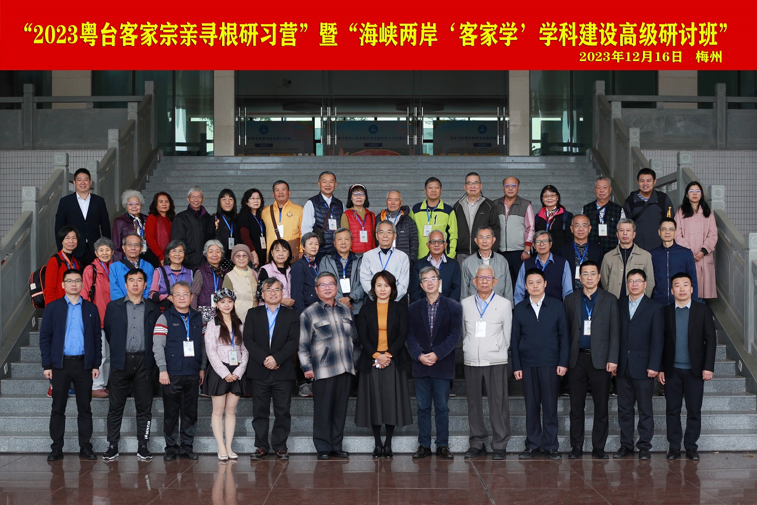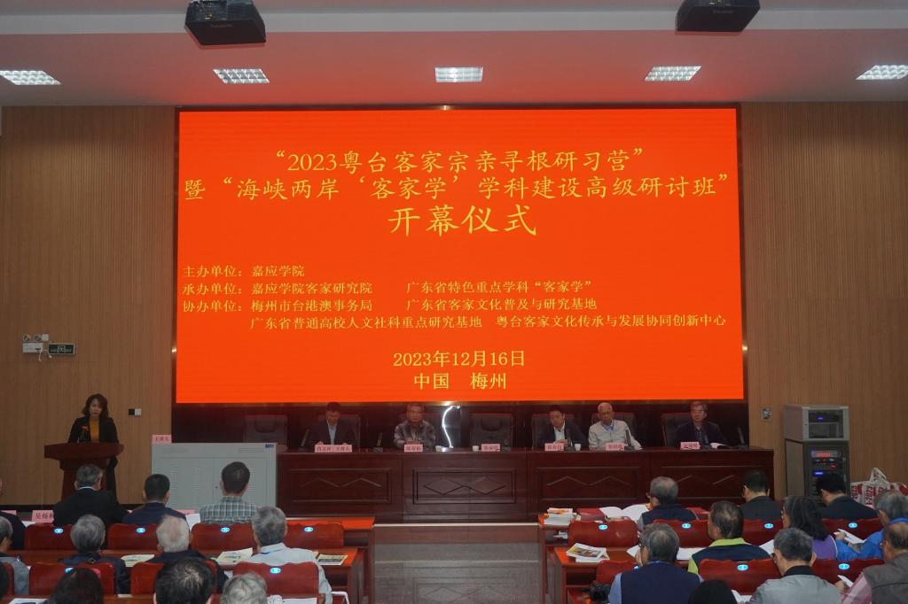 2023年12月15-19日,由嘉应学院主办,嘉应学院客家研究院和广东省特色重点学科“客家学”承办,梅州市台港澳事务局、广东省客家文化普及与研究基地、广东省普通高校人文社科重点研究基地、粤台客家文化传承与发展协同创新中心协办的“2023粤台客家宗亲寻根研习营”暨“海峡两岸‘客家学’学科建设高级研讨班”在梅州顺利举行。来自台湾师范大学、台湾联合大学、台湾美和科技术大学、台湾六堆文化研究学会、六堆杂志社等的学者和嘉宾共50余人参加了此次活动。