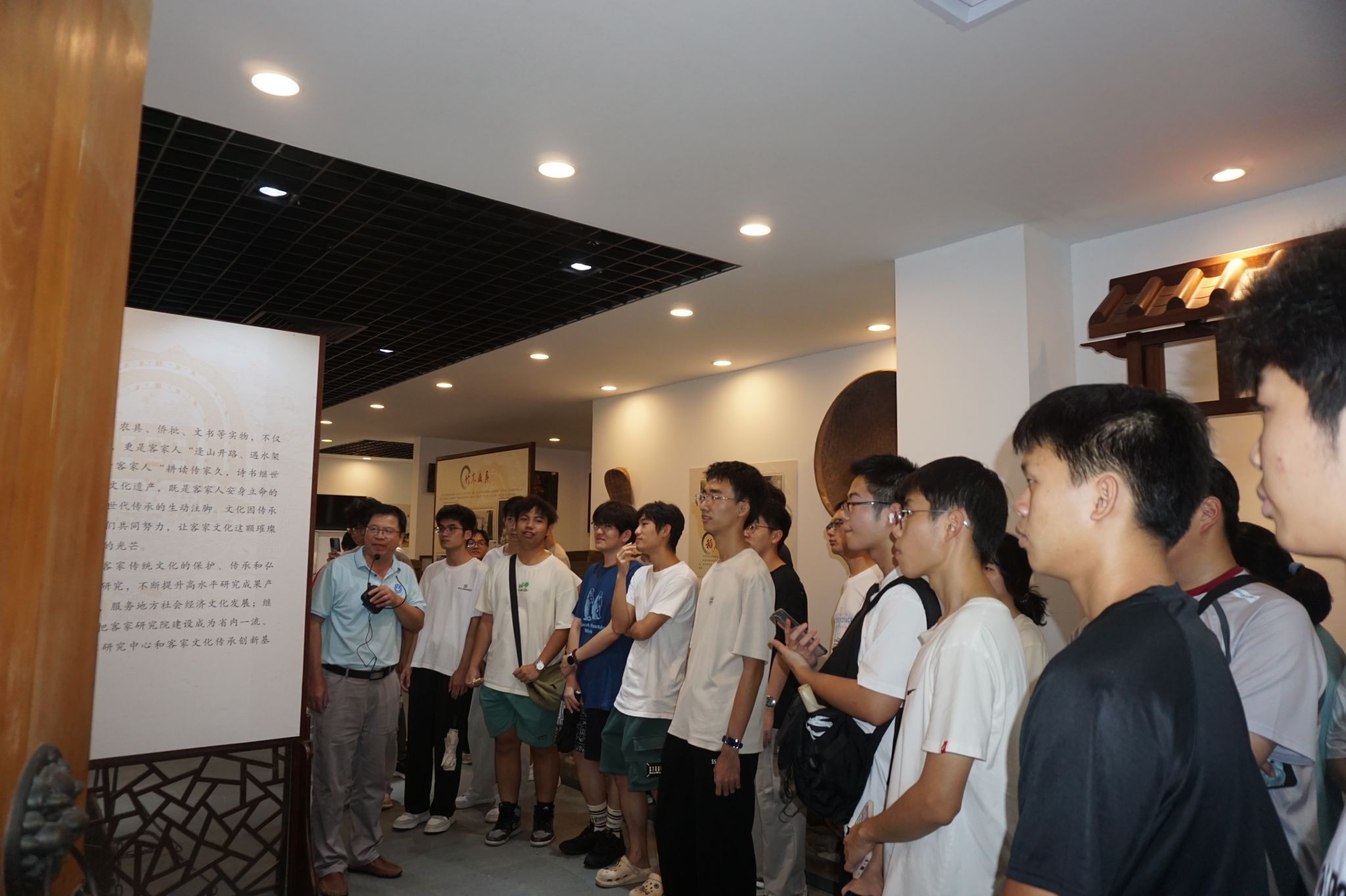 为帮助2025级新生了解梅州客家文化底蕴,认识我校“植根侨乡,弘扬客家文化”办学特色。9月24日下午,组织动员90名大一新生组团参访客家文化研究院。