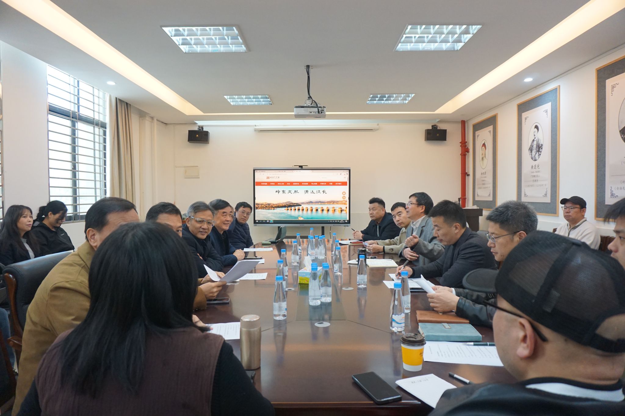 1月15日,韩山书院山长李伟雄及岭东人文网一行十余人来院调研,并就双方合作研究客潮文化、加强网站建设等进行交流。肖文评院长主持了座谈会,研究院、文学院和历史文化学院相关负责人和老师参加。双方就华侨史、岭东人物、方言、客潮文化融合等方面进行了广泛探讨,并就双方进行深度合作开展相关研究和加强岭东人文网建设达成共识。